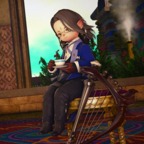 21st Sun of the 2nd Umbral MoonBorn under the Lover's Moon during the evening, on an island kingdom far away from Eorzea's shores, Elysia to most and Elsae to some found herself acquiring a home away from her homeland in the gorgeous forests of Gridania and the cold mountains of Coerthas. Her love of people brought her curious heart to a few venues, warmed by peoples joy and smiles and met a kind musical enthusiast who introduced her to the cafe. Needless to say she fell hopelessly in love with the energy and people who frequent it's happy walls, and now she jubilantly works here, gushing over others and fawning over people.